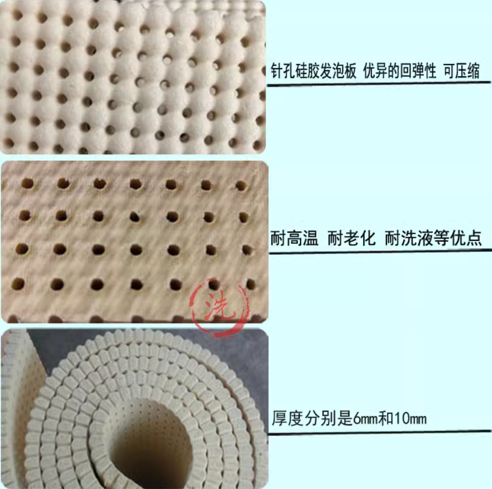 200psi Wytrzymałość na rozciąganie Perforowana płyta z pianki silikonowej 10 mm × 0,9 m × 1,8 m
